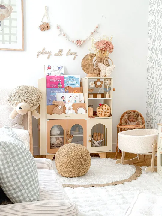 With classic vintage tones, working knobs, and spacious shelves, it brings warmth and charm to every playroom—inviting toddlers and young kids to explore, pretend, and dream freely.